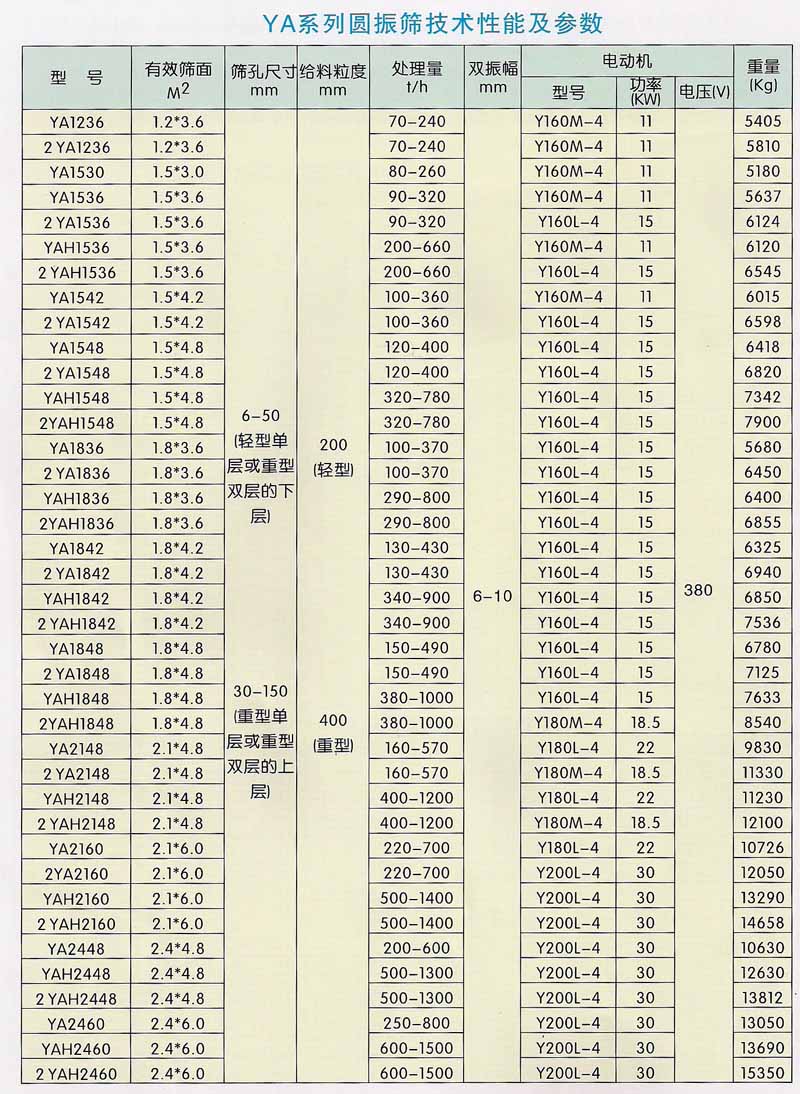 YA系列圓振篩是一種運(yùn)動(dòng)軌跡為圓的篩分設(shè)備,該機(jī)采用國(guó)外先進(jìn)技術(shù)設(shè)計(jì)而成,具有技術(shù)參數(shù)先進(jìn),振動(dòng)強(qiáng)度大,處理能力大,篩分效率高等特點(diǎn),適合于選礦、選煤、建材、電力及化工等部門作物料分級(jí)使用。